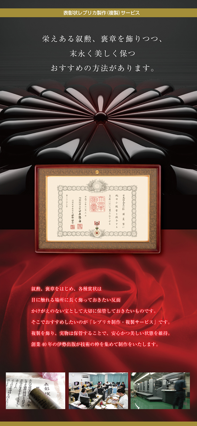叙勲・褒章 表彰状レプリカ(複製)制作サービス